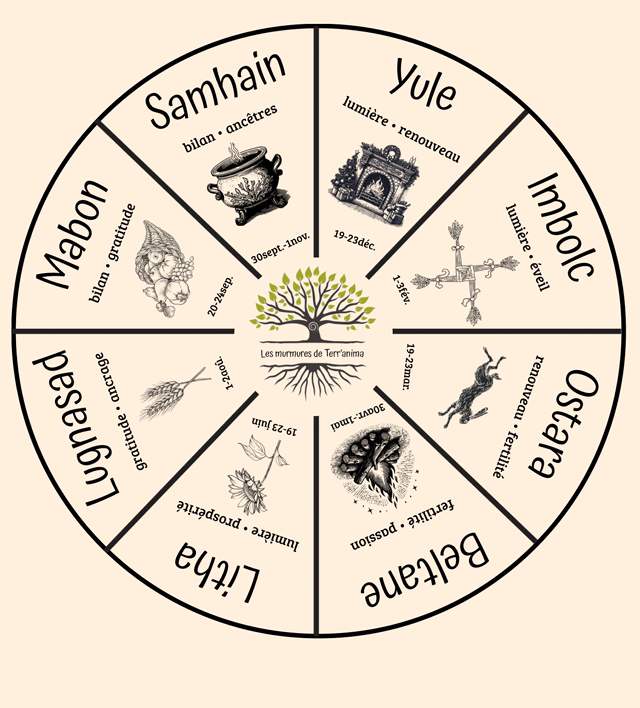 samhain, yule, imbolc, ostara, beltane, litha, lughnasadh, mabon.