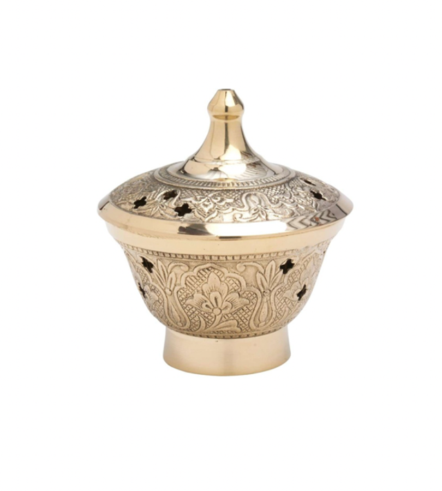 C’est un encensoir qui s’utilise avec un charbon ( tu as une explication comment utiliser un encensoir à charbon sur la page d’acceuil).