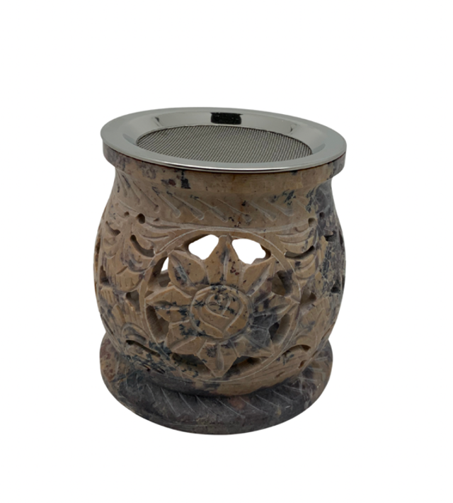 Cet encensoir en pierre ollaire est un encensoir à fumigation douce. Il fonctionne avec une bougie ce qui évite un excès de fumée comme c’est le cas pour les encensoirs à charbon.